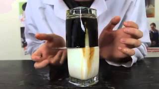 Sebuah percobaan yang unik menarik. Susu dengan soda bercampur saling mengisi, bertukar tempat.